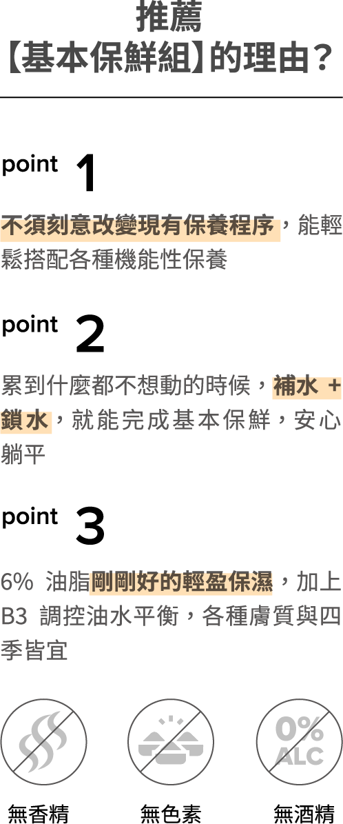 【基本保鮮組】舒緩洗臉後的緊繃,深度補水、掃除老化因子