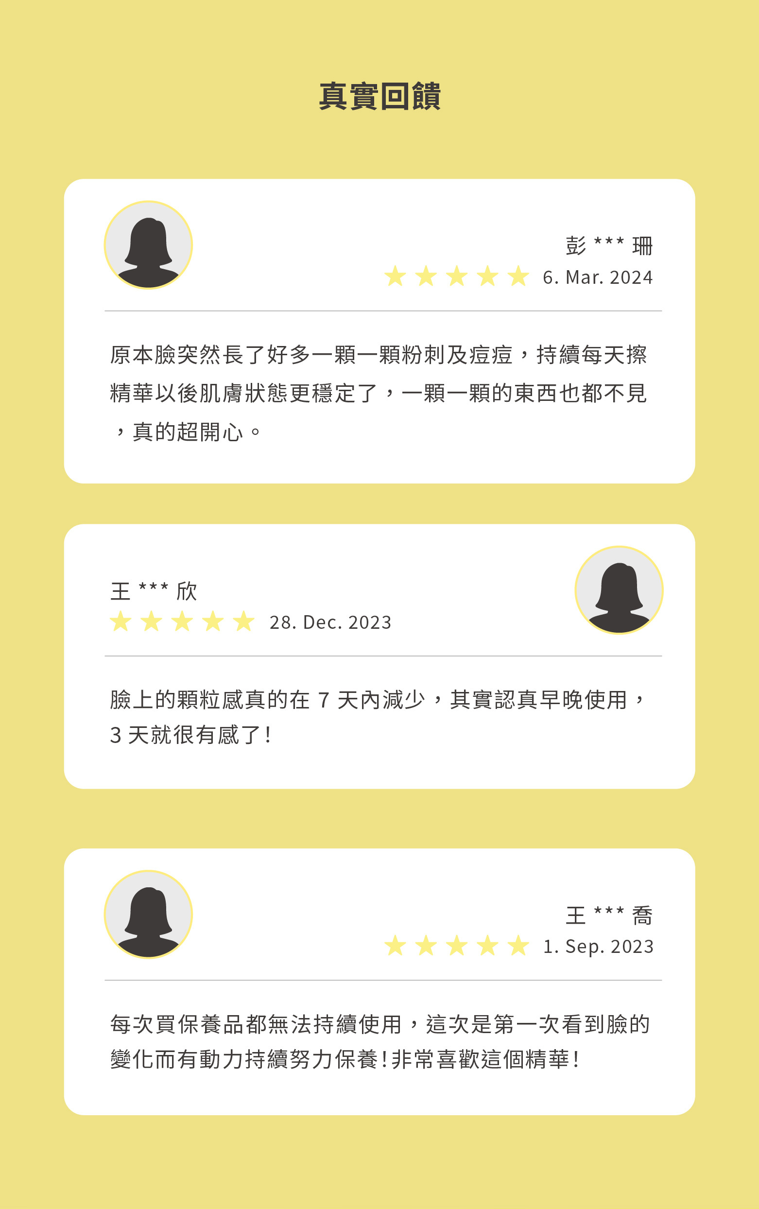 皮膚脫屑代表產品正在代肌膚角質或老化細胞,可以搭配角質平衡機能水,補充水分並幫助角質溫和脫落,持續使用至無脫屑反應為止,會發現肌膚表層更為滑嫩。
