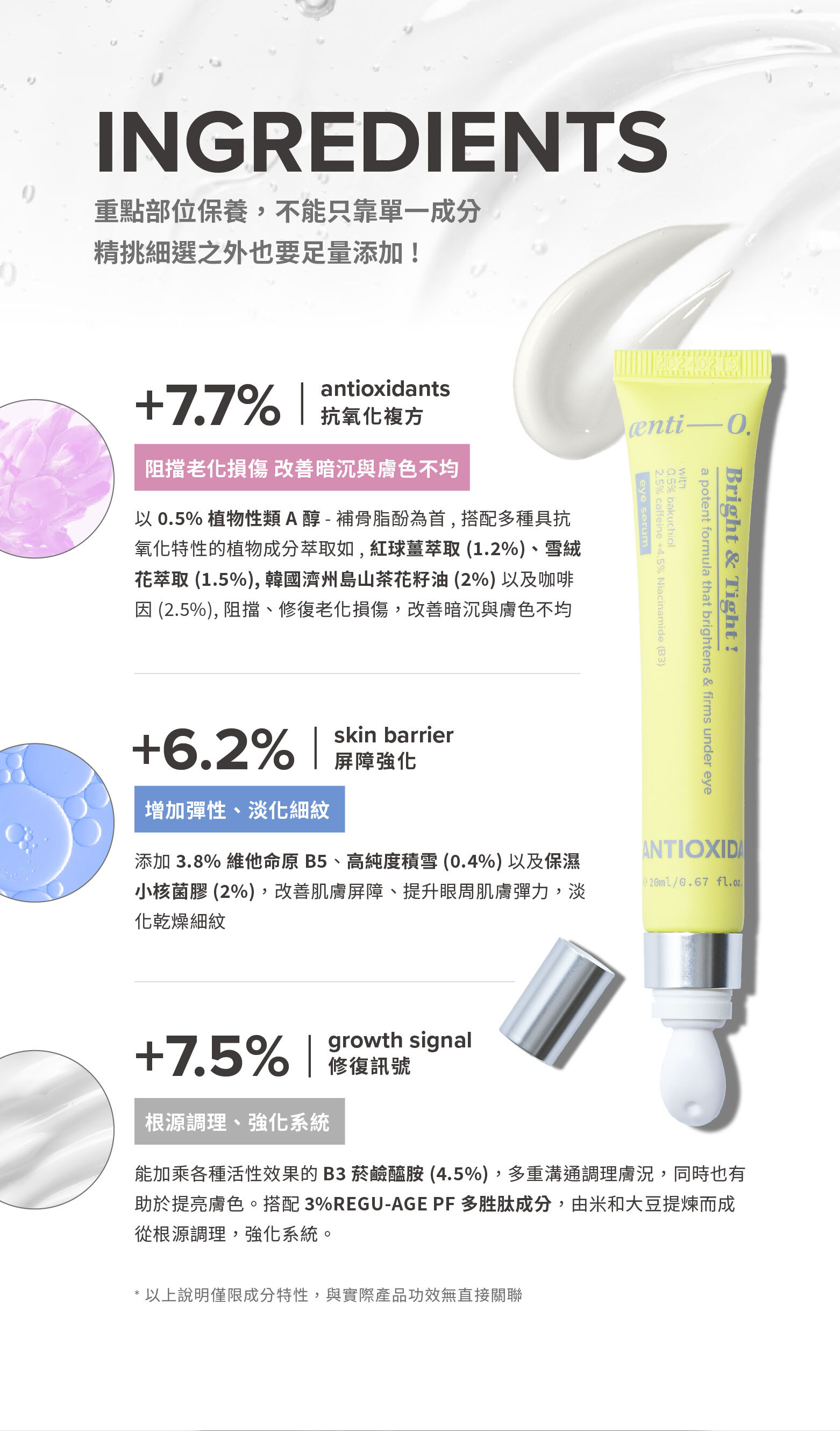 ( 強化抵禦 4 / 表皮修復 9 / 修復訊號 1 / 保存系統 4 / 配方安定系統 7 / 界面清潔系統 5 )