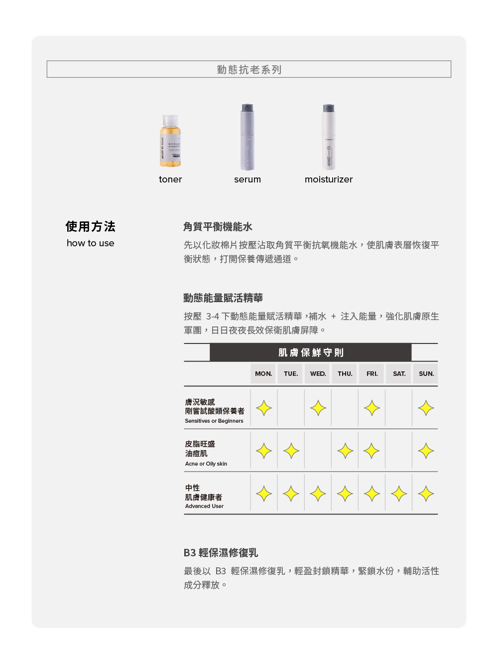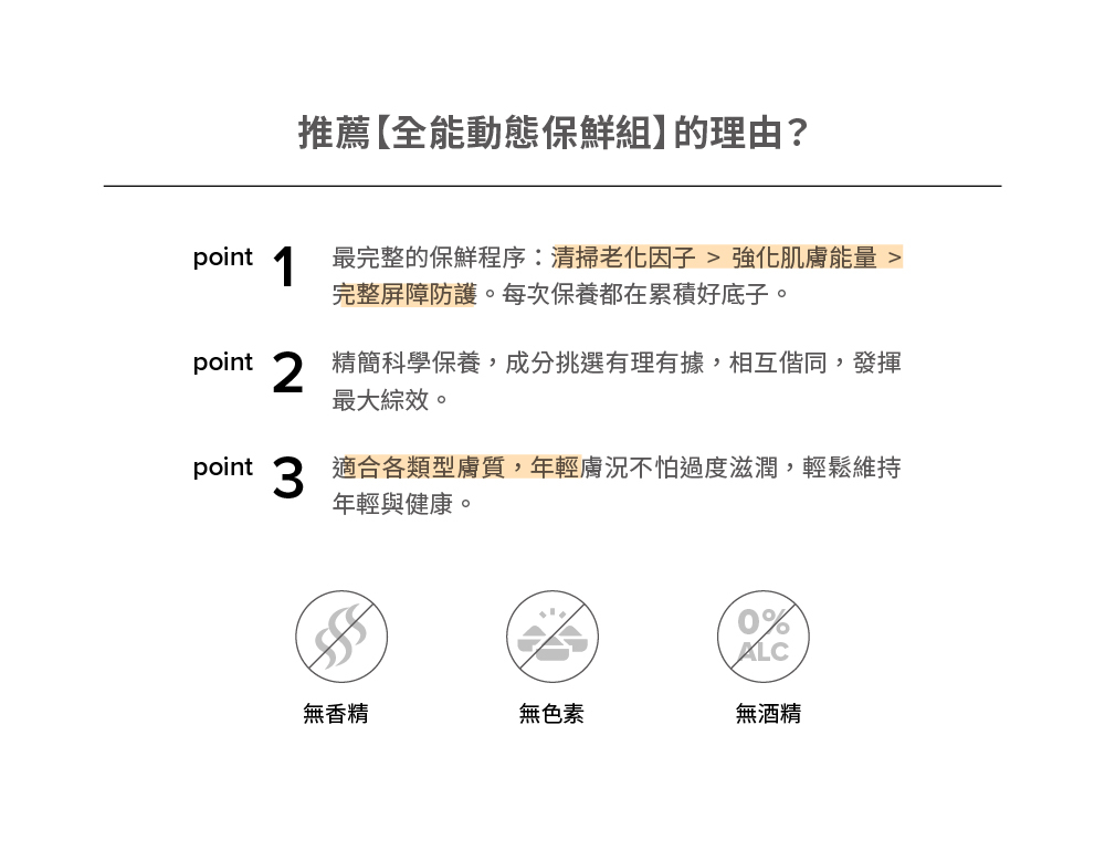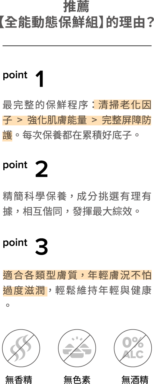 肌膚保鮮,不能只單靠單一成分 ; 系統性抗老,才能持久保鮮