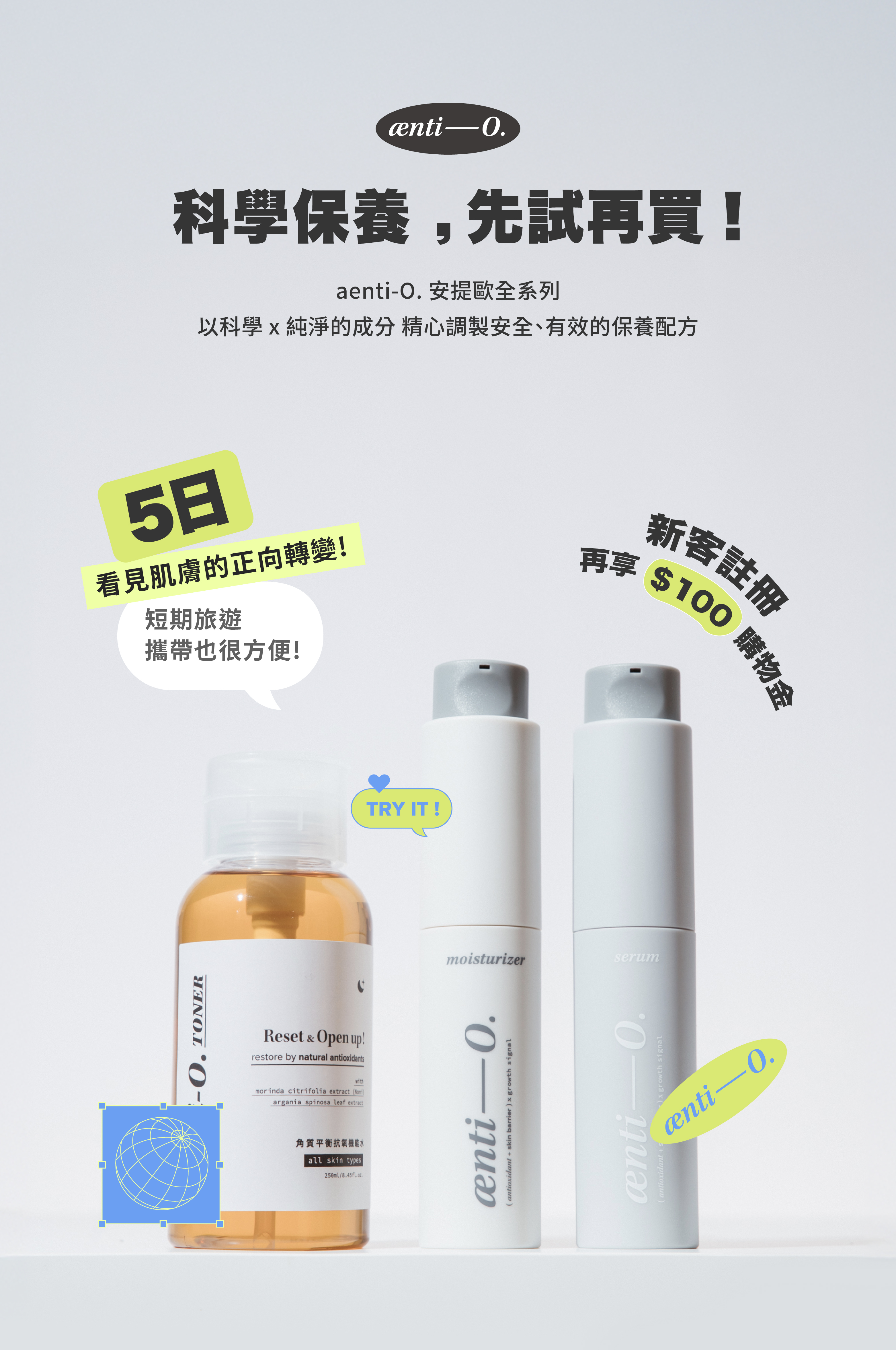 aenti-O. 安提歐全系列, 以**科學 x 純淨的成分** 精心調製安全、有效的抗老、保養配方